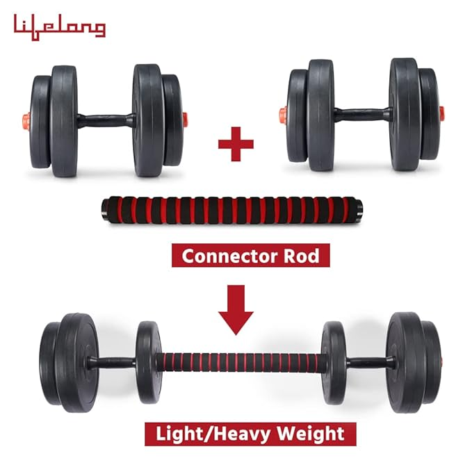Lifelong LLPVCHGC06 PVC Home Gym Set 20kg Plate with Extension Barbell Rod and Dumbbells Rods with Gym Accessories for Home Workouts