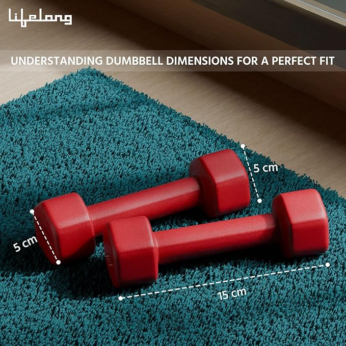 Lifelong Neoprene Dumbbells Set of 2 (1kg x 2) – Fixed Weight Set for Home Gym, Fitness, Gym Exercise, Home Workout