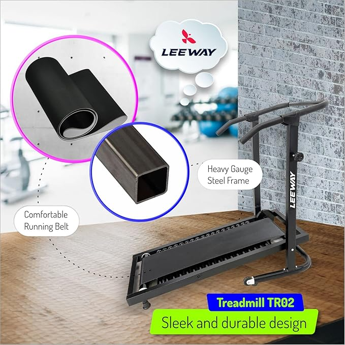 LEEWAY Manual Treadmill for Home, (TR-02, Running Surface: 46in x 13in.) Running Machine for Home Gym