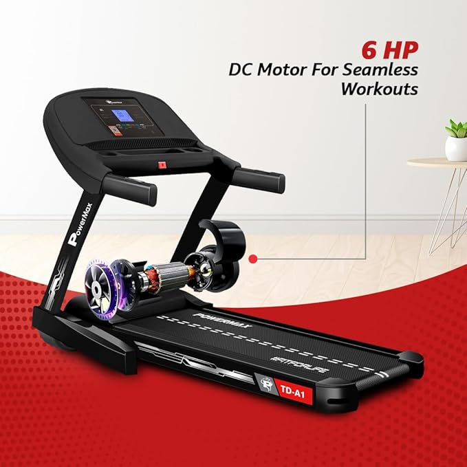 PowerMax Fitness TD-A1 6HP Motorised Foldable Treadmill for Home User Wt. 120kg 15 Lvl Auto-Incline Running Machine for Max Pro workout, Top Speed 14 km/ph