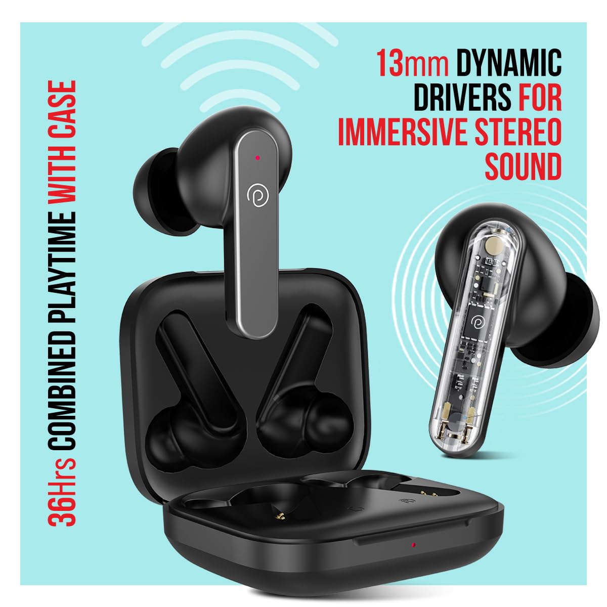 pTron Earbuds, TruTalk AI-ENC Calls, 36Hrs Playtime, in-Ear Bluetooth 5.3, Voice Assistant, Type-C Fast Charging