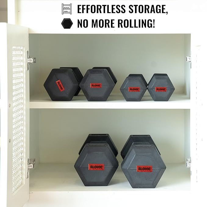 • [PREMIUM HEX DESIGN]: ✅ The Slovic Dumbbell Set features a unique hexa (hexagonal) shape that prevents rolling and ensures better grip stability during your workouts.